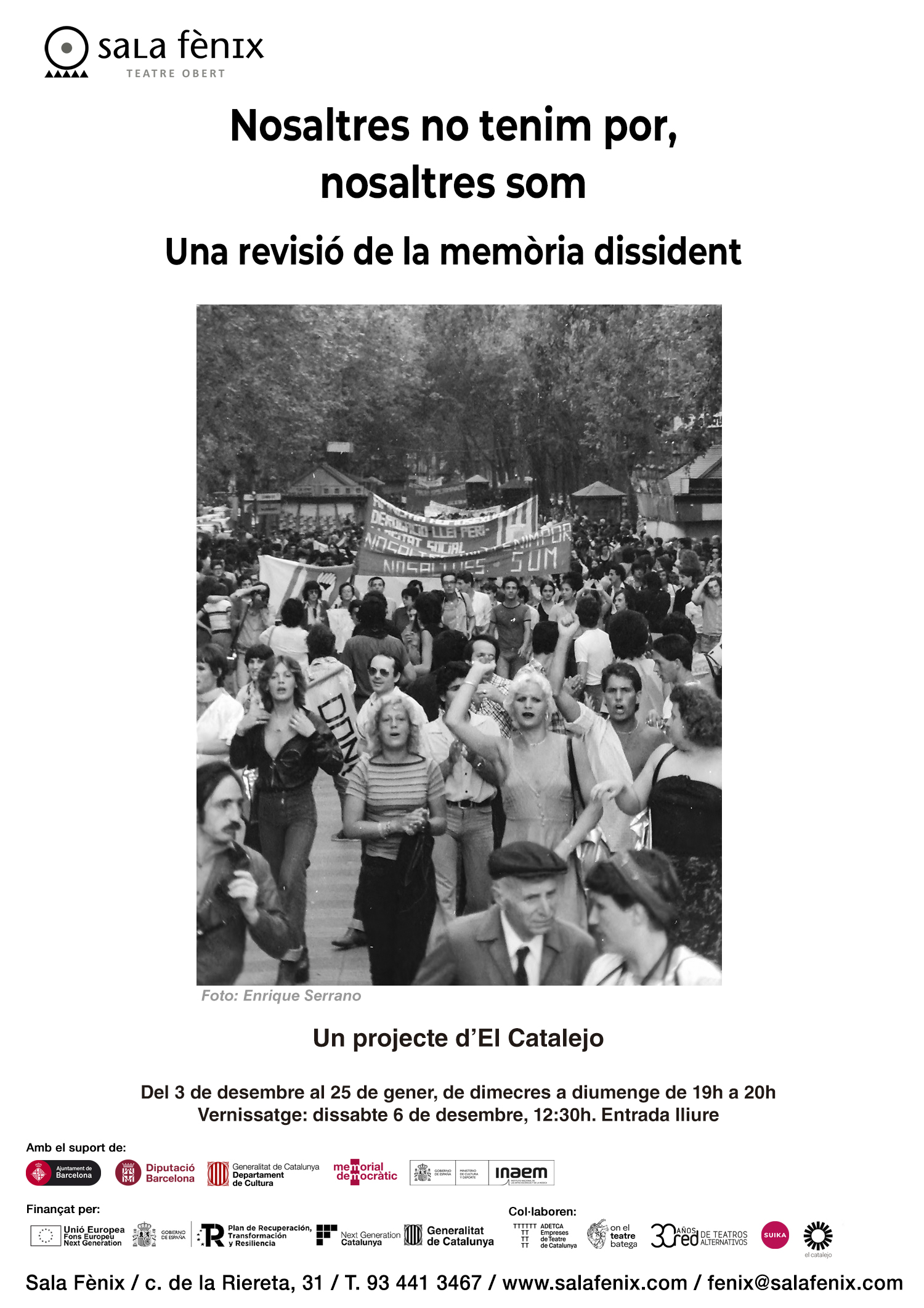 Exposició: Nosaltres no tenim por, nosaltres som. Una revisió de la memòria dissident // Un projecte d’El Catalejo // Del 3 de desembre al 25 de gener, de dimecres a diumenge de 19h a 20h // Vernissatge: dissabte 6 de desembre, 12:30h // ENTRADA LLIURE
